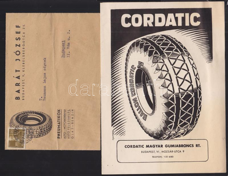 1947 Cordatic Magyar Gumiabroncs Rt. árjegyzéke hirdetéses borítékkal https://www.darabanth.com/de/162-Fernauktion/162.0/Andere-Sammelgebiete/Werbungen~1000008/1947-Cordatic-Magyar-Gumiabroncs-Rt-arjegyzeke-hirdeteses-boritekkal~II524284