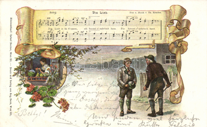 Alpnist folklore, sheet music, s: F. Dückerim (Rb) https://www.darabanth.com/de/162-Fernauktion/162.0/Ansichtskarten/Folklore~1000089/Alpnist-folklore-sheet-music-s-F-Duckerim-Rb~II525595
