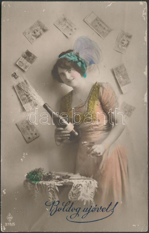 New Year woman with champagne https://www.darabanth.com/de/162-Fernauktion/162.0/Ansichtskarten/GruC39Fkarte~1000119/New-Year-woman-with-champagne~II522916