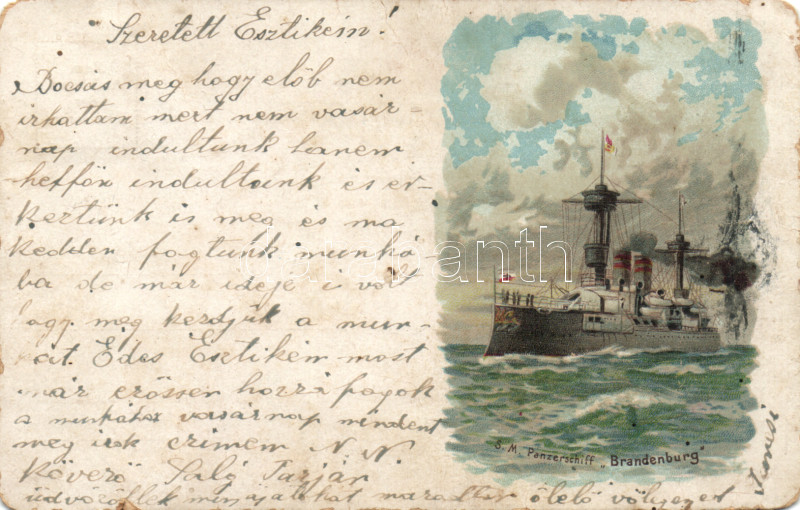 SMS Brandenburg, litho (small tear) https://www.darabanth.com/de/162-Fernauktion/162.0/Ansichtskarten/Kriegsschiff~1000092/SMS-Brandenburg-litho-small-tear~II525979