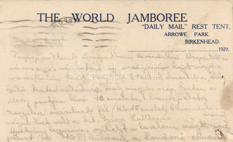 Scout, The world jamboree, Birkenhead, 1929 (fa) https://www.darabanth.com/de/162-Fernauktion/162.0/Ansichtskarten/Pfadfinder~1000085/Scout-The-world-jamboree-Birkenhead-1929-fa~II526478