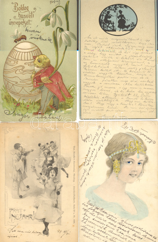 Beschreibung: 27db régi üdvözlő, motívum képeslap jobbakkal