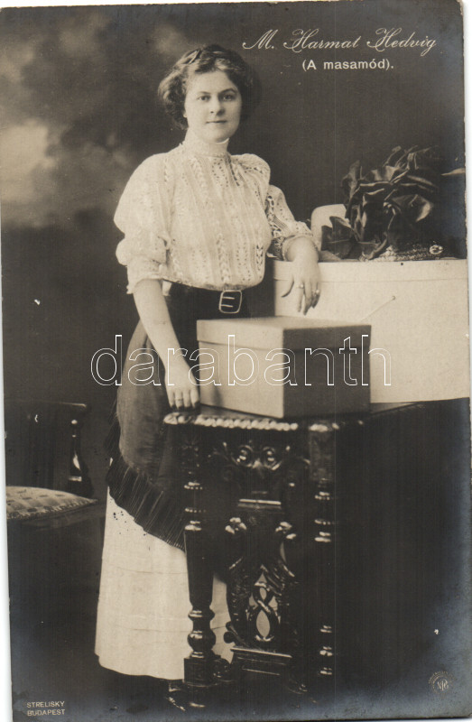M. Harmat Hedvig in A masamód https://www.darabanth.com/de/162-Fernauktion/162.0/Ansichtskarten/Schauspielerin~1000115/M-Harmat-Hedvig-in-A-masamod~II525588