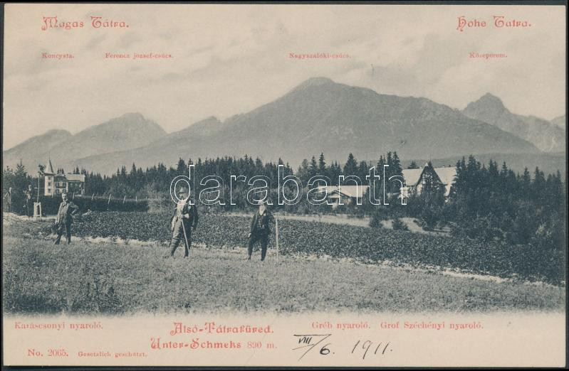 Alsótátrafüred Villa Karácsonyi, Gréb, Széchenyi https://www.darabanth.com/de/162-Fernauktion/162.0/Ansichtskarten/Slowakei~500007/Alsotatrafured-Villa-Karacsonyi-Greb-Szechenyi~II523983
