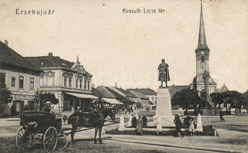 Érsekújvár Kossuth square, Hotel National (b) https://www.darabanth.com/de/162-Fernauktion/162.0/Ansichtskarten/Slowakei~500007/Ersekujvar-Kossuth-square-Hotel-National-b~II523704