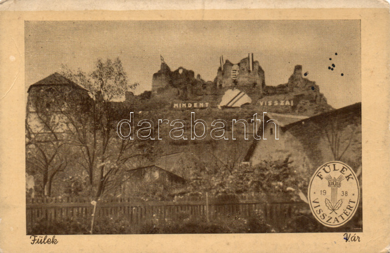 Fülek castle ruins with irredenta, visszatért https://www.darabanth.com/de/162-Fernauktion/162.0/Ansichtskarten/Slowakei~500007/Fulek-castle-ruins-with-irredenta-visszatert~II526536