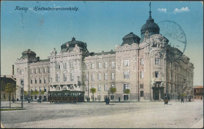Kassa military office with tram https://www.darabanth.com/de/162-Fernauktion/162.0/Ansichtskarten/Slowakei~500007/Kassa-military-office-with-tram~II523961