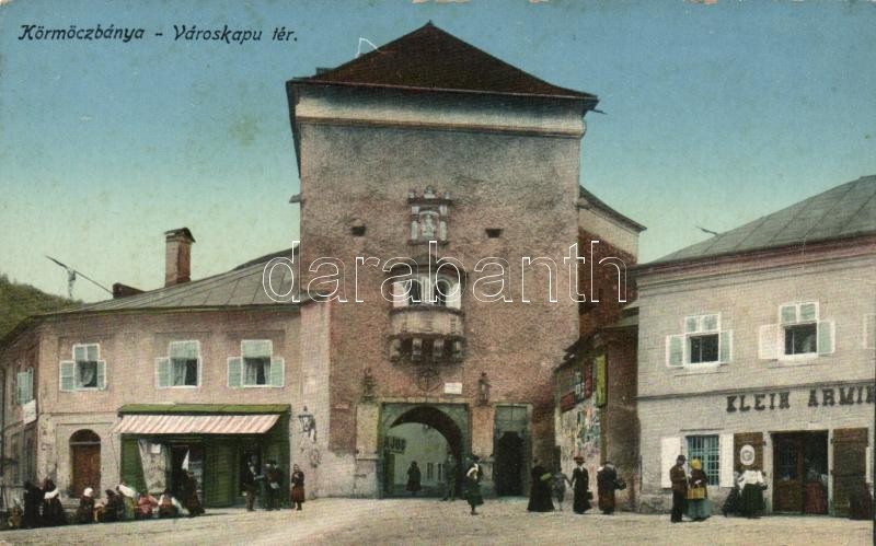 Körmöcbánya city gate with the shop of Ármin Klein https://www.darabanth.com/de/162-Fernauktion/162.0/Ansichtskarten/Slowakei~500007/Kormocbanya-city-gate-with-the-shop-of-Armin-Klein~II523700