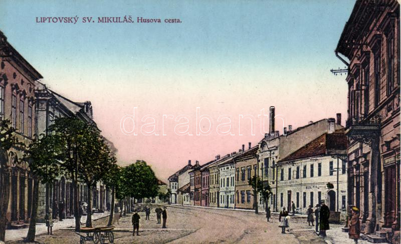 Liptószentmiklós Hus street https://www.darabanth.com/de/162-Fernauktion/162.0/Ansichtskarten/Slowakei~500007/Liptoszentmiklos-Hus-street~II523706