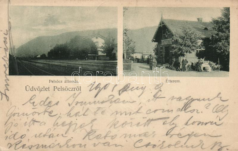 Pelsőc railway station and restaurant (EK) https://www.darabanth.com/de/162-Fernauktion/162.0/Ansichtskarten/Slowakei~500007/Pelsoc-railway-station-and-restaurant-EK~II523724
