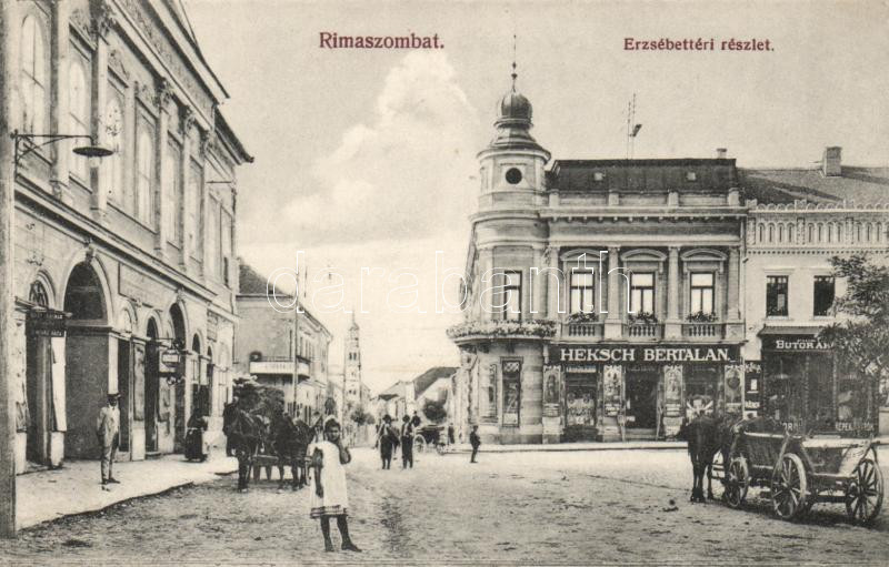 Rimaszombat Erzsébet square, the shop of Bertalan Heksch https://www.darabanth.com/de/162-Fernauktion/162.0/Ansichtskarten/Slowakei~500007/Rimaszombat-Erzsebet-square-the-shop-of-Bertalan-Heksch~II523720
