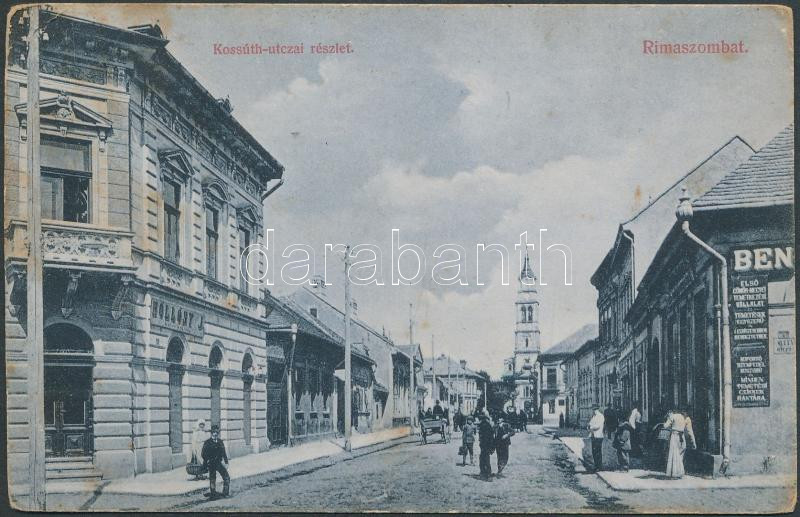 Rimaszombat Kossuth street with the shop of Hollósy (EK) https://www.darabanth.com/de/162-Fernauktion/162.0/Ansichtskarten/Slowakei~500007/Rimaszombat-Kossuth-street-with-the-shop-of-Hollosy-EK~II524099