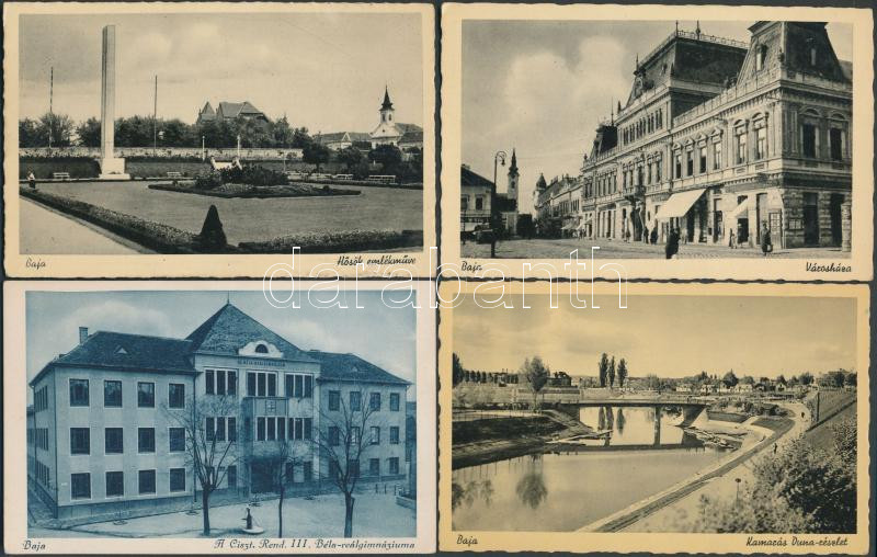 Beschreibung: Baja - 4 db jó állapotú városképes lap a negyvenes évekből