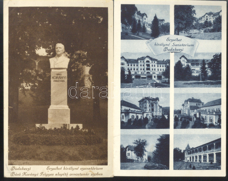 Beschreibung: Budakeszi - 2 db képeslap, Erzsébet királyné szanatórium, Báró Horányi Frigyes alapító orvostanár szobra