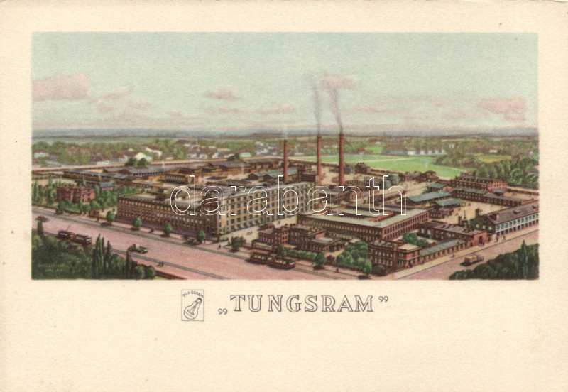Budapest IV. Tungsram gyár, a cég hirdetésével a hátoldalon https://www.darabanth.com/de/162-Fernauktion/162.0/Ansichtskarten/Ungarn~500005/Budapest-IV-Tungsram-gyar-a-ceg-hirdetesevel-a-hatoldalon~II526419
