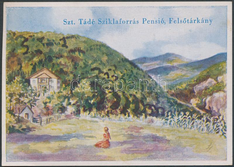 Felsőtárkány Szent Tádé Sziklaforrás Panzió, szignózott (EK) https://www.darabanth.com/de/162-Fernauktion/162.0/Ansichtskarten/Ungarn~500005/Felsotarkany-Szent-Tade-Sziklaforras-Panzio-szignozott-EK-3Cbr3E~II524255