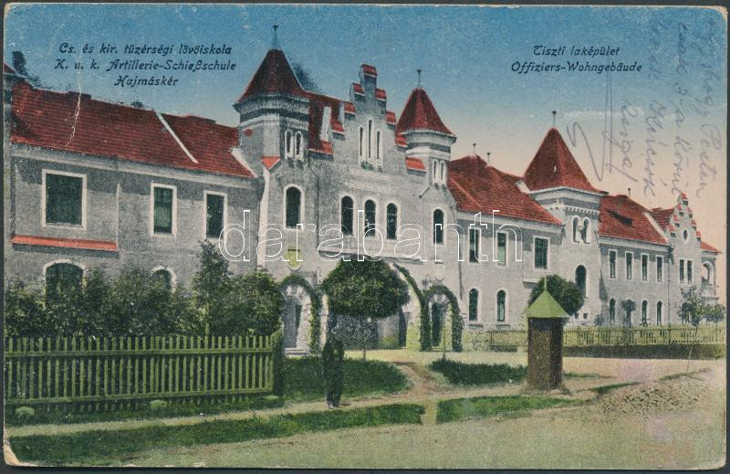 Hajmáskér tüzérségi lövőiskola, tiszti laképület, Divald & Monostory https://www.darabanth.com/de/162-Fernauktion/162.0/Ansichtskarten/Ungarn~500005/Hajmasker-tuzersegi-lovoiskola-tiszti-lakepulet-Divald-Monostory~II524130