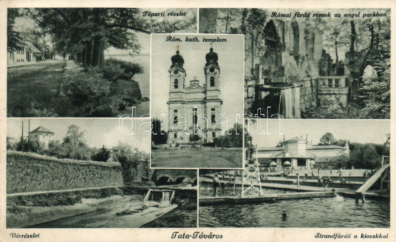 Tata-Tóváros Vár, római fürdőromok az angol parkban, strand https://www.darabanth.com/de/162-Fernauktion/162.0/Ansichtskarten/Ungarn~500005/Tata-Tovaros-Var-romai-furdoromok-az-angol-parkban-strand~II525103