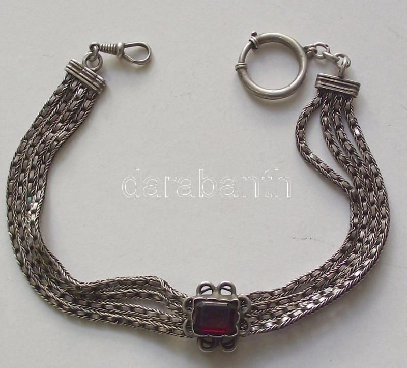 Beschreibung: 1872-1922 Elegáns ezüst (Ag) óralánc féldrágakövekkel díszítve az Osztrák-Magyar Monarchia 750/1000 tisztaságjelzésével /