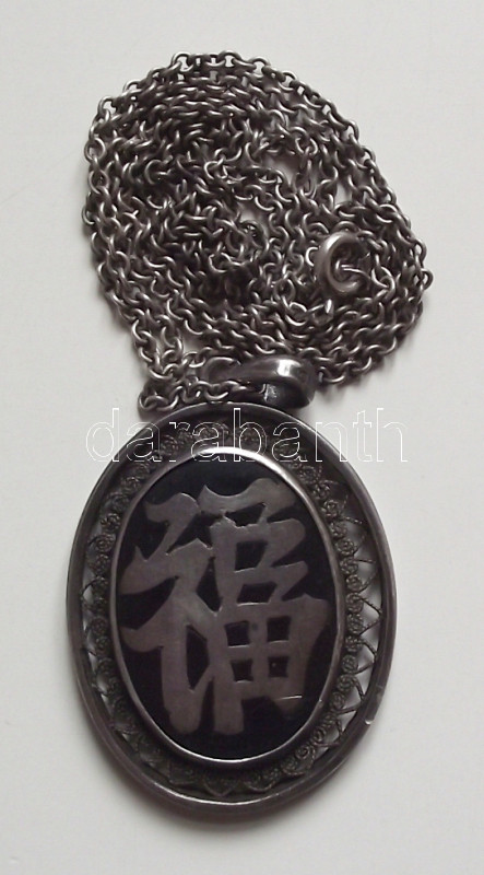 Beschreibung: Régi ezüst (Ag) nyaklánc kínai jelet ábrázoló medállal /