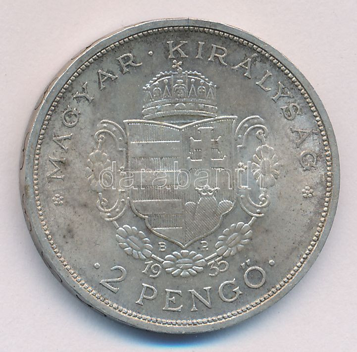 1935. 2P Ag "Rákóczi" T:2 ph. https://www.darabanth.com/de/162-Fernauktion/162.0/Numismatik/Ungarische-Munzen~1000135/1935-2P-Ag-Rakoczi-T2-ph~II527817