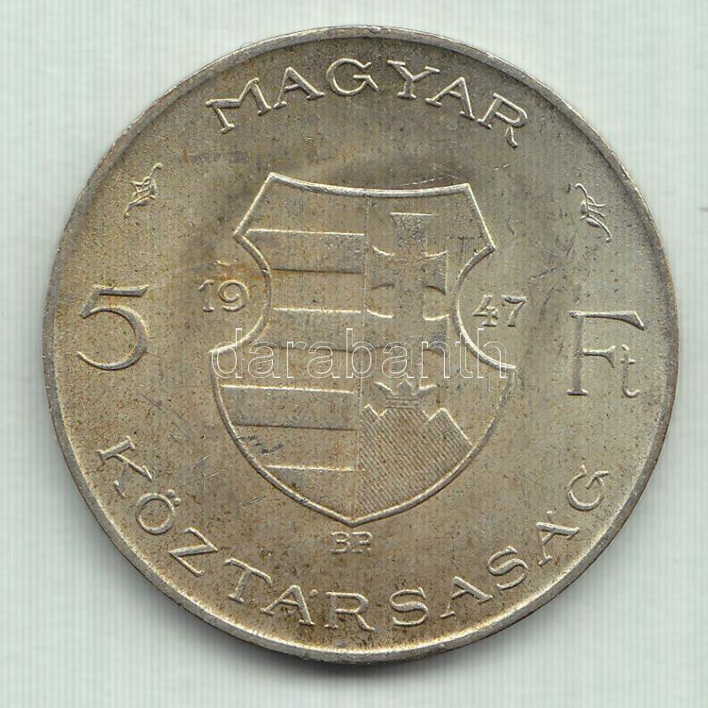 1947. 5Ft Ag "Kossuth" T:1- https://www.darabanth.com/de/162-Fernauktion/162.0/Numismatik/Ungarische-Munzen~1000135/1947-5Ft-Ag-Kossuth-T1-~II515880