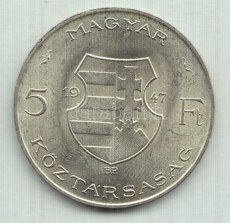 1947. 5Ft Ag "Kossuth" T:2 ph. https://www.darabanth.com/de/162-Fernauktion/162.0/Numismatik/Ungarische-Munzen~1000135/1947-5Ft-Ag-Kossuth-T2-ph~II515875