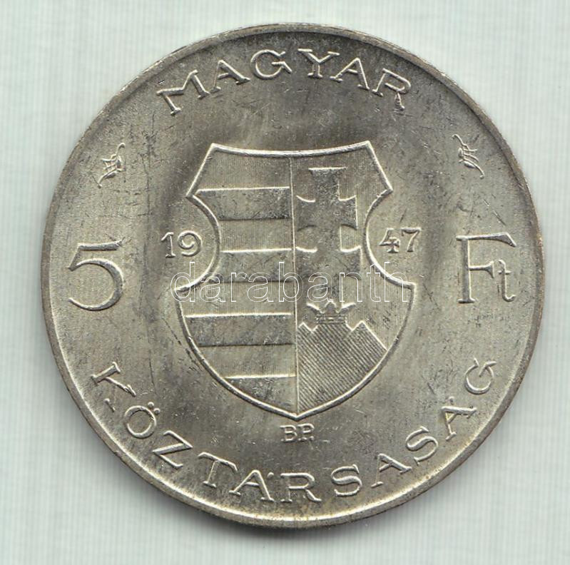 1947. 5Ft Ag "Kossuth" T:2 ph. https://www.darabanth.com/de/162-Fernauktion/162.0/Numismatik/Ungarische-Munzen~1000135/1947-5Ft-Ag-Kossuth-T2-ph~II515876