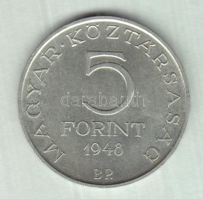 1948. 5Ft Ag "Petőfi" T:3 https://www.darabanth.com/de/162-Fernauktion/162.0/Numismatik/Ungarische-Munzen~1000135/1948-5Ft-Ag-Petofi-T3~II516883