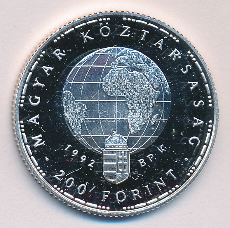 Beschreibung: 1992. 200Ft Ag "Veszélyeztetett állatvilág-gólya" T:PP
