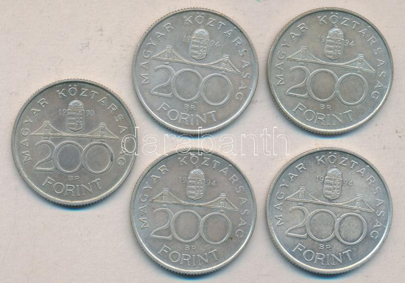 Beschreibung: 1993. 200Ft Ag "MNB" + 1994. 200Ft Ag "Deák" (4x) T:2-