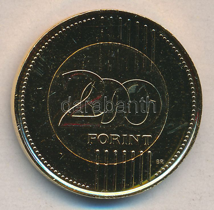 2009. 200Ft aranyozva T:BU Tanúsítvánnyal! https://www.darabanth.com/de/162-Fernauktion/162.0/Numismatik/Ungarische-Munzen~1000135/2009-200Ft-aranyozva-TBU-Tanusitvannyal~II527880