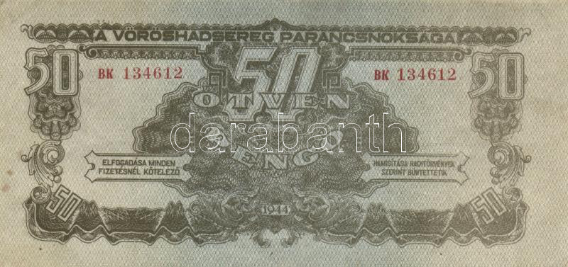 1944. 50P "Vöröshadsereg Parancsnoksága" T:II- https://www.darabanth.com/de/162-Fernauktion/162.0/Numismatik/Ungarische-banknoten~1000134/1944-50P-Voroshadsereg-Parancsnoksaga-TII-~II481566