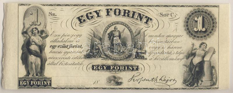Emigrációs "Kossuth-bankó" 18.. 1Ft "Sor C." T:I https://www.darabanth.com/de/162-Fernauktion/162.0/Numismatik/Ungarische-banknoten~1000134/Emigracios-Kossuth-banko-18-1Ft-Sor-C-TI~II282425