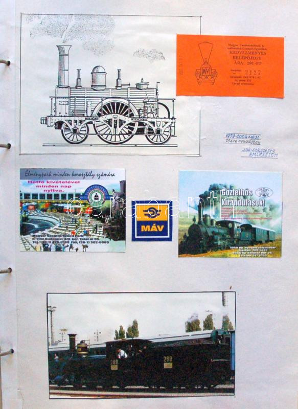 Beschreibung: Hatalmas vasutas emlék tétel rengeteg fényképpel, újságcikkekkel, szórólapokkal, összesen 153db