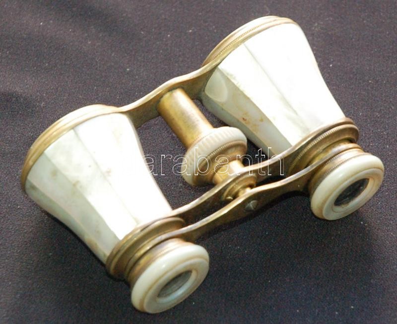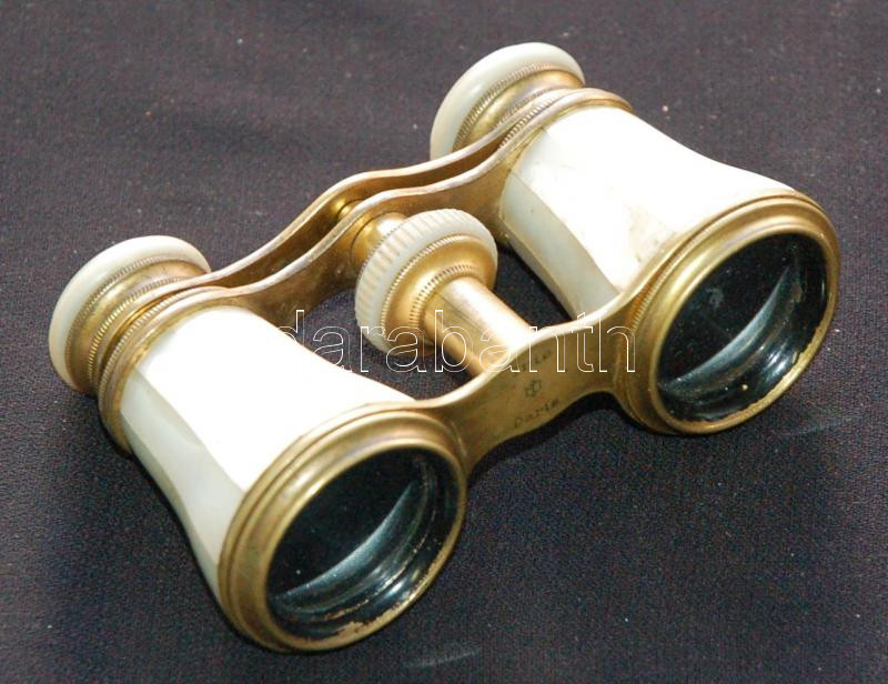 cca 1900 Jelzett "Iris Paris" márkájú réz színházi látcső hibátlan gyöngyházberakással. Kisebb javításra szorul /