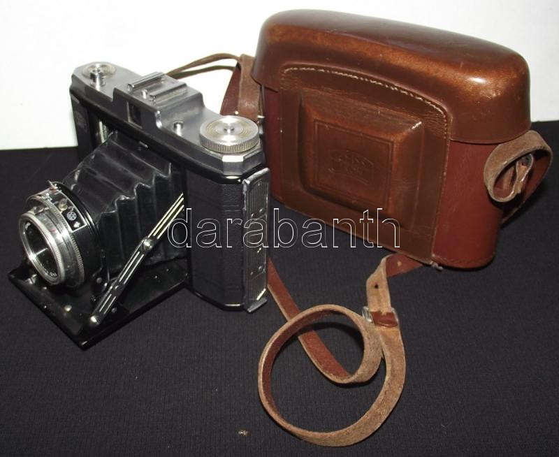 Zeiss Ikon Nettar típusú harmonikás fényképezőgép Novar-Anastigmat f4.5/75mm objektívvel eredeti bőrtokban, a keresőhöz külön bőrtokkal. Kiváló állapotban /