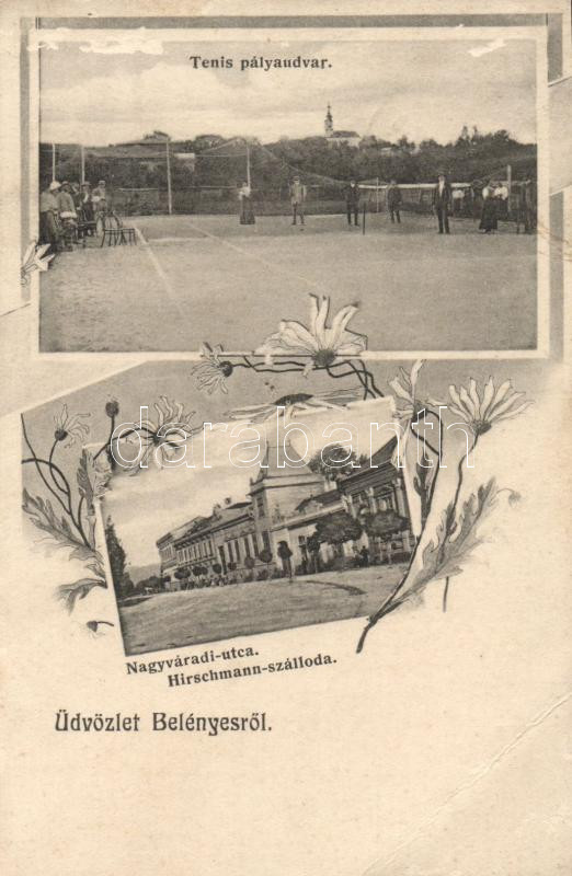 Belényes tennis court, Hotel Hirschmann (EB) https://www.darabanth.com/de/163-Fernauktion/163.0/Ansichtskarten/Siebenburgen~500007/Belenyes-tennis-court-Hotel-Hirschmann-EB~II532869