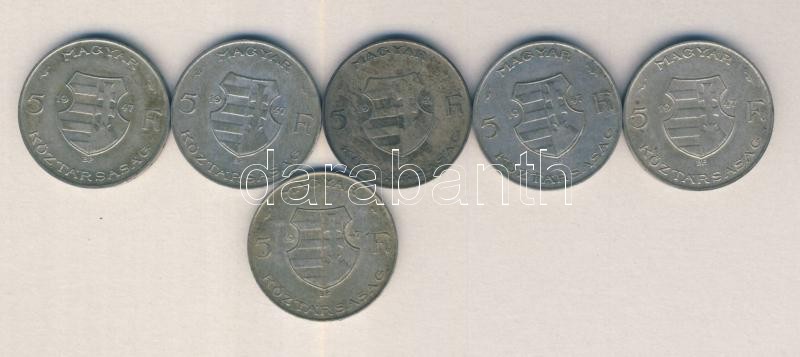 1947. 5Ft Ag "Kossuth" (6x) T:3 https://www.darabanth.com/de/163-Fernauktion/163.0/Numismatik/Ungarische-Munzen~1600132/1947-5Ft-Ag-Kossuth-6x-T3~II529384