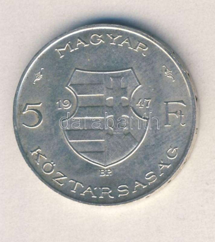 1947. 5Ft Ag "Kossuth" T:2 ph. https://www.darabanth.com/de/163-Fernauktion/163.0/Numismatik/Ungarische-Munzen~1600132/1947-5Ft-Ag-Kossuth-T2-ph~II529099