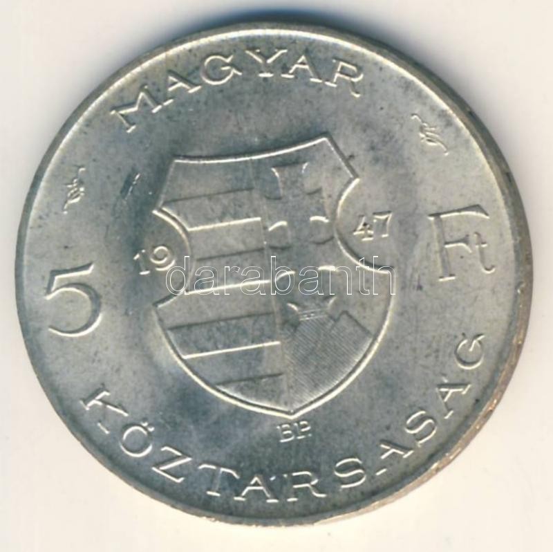 1947. 5Ft Ag "Kossuth" T:2 ph. https://www.darabanth.com/de/163-Fernauktion/163.0/Numismatik/Ungarische-Munzen~1600132/1947-5Ft-Ag-Kossuth-T2-ph~II529354