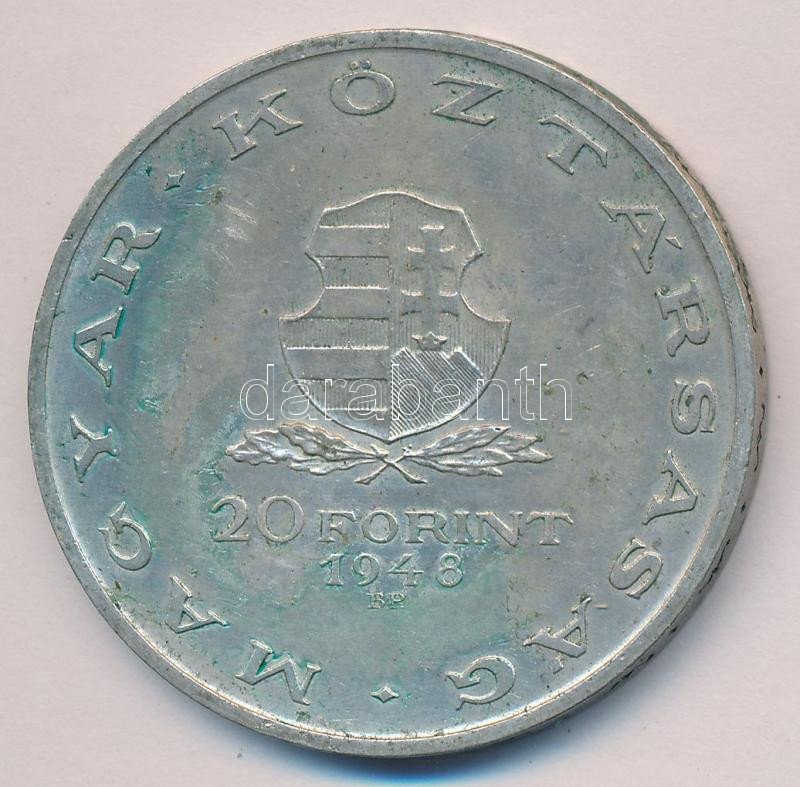 1948. 20Ft Ag "Táncsics" T:2 https://www.darabanth.com/de/163-Fernauktion/163.0/Numismatik/Ungarische-Munzen~1600132/1948-20Ft-Ag-Tancsics-T2~II529530