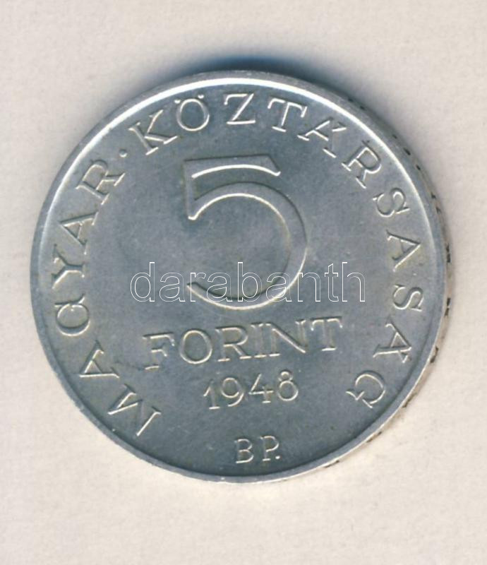 1948. 5Ft Ag "Petőfi" T:2 https://www.darabanth.com/de/163-Fernauktion/163.0/Numismatik/Ungarische-Munzen~1600132/1948-5Ft-Ag-Petofi-T2~II529102