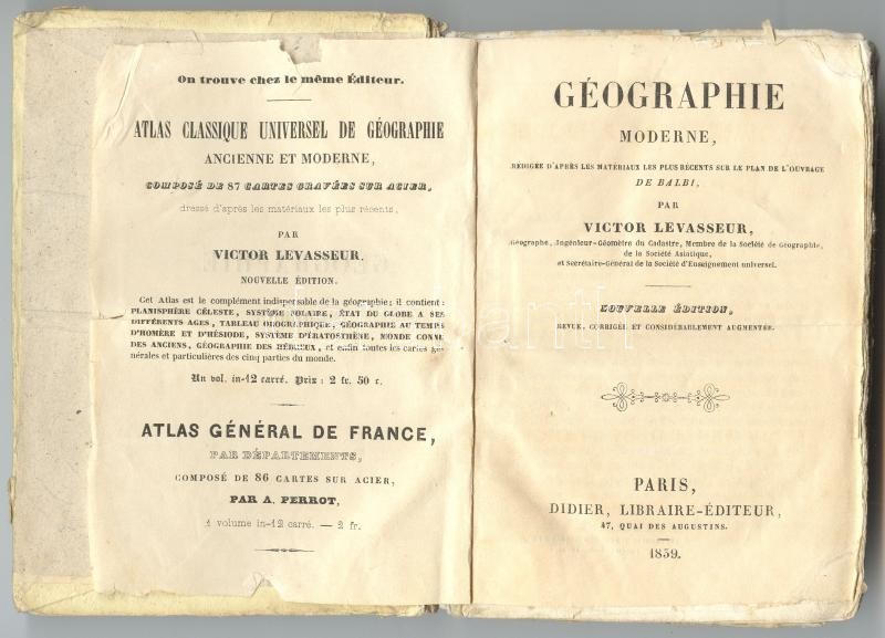 Victor Levasseur: Géographie moderne. Paris, 1839, Librairie de Didier... https://www.darabanth.com/de/164-Fernauktion/164.0/Andere-Sammelgebiete/Bucher-Andere-Sprachen~500035/Victor-Levasseur-Geographie-moderne-Paris-1839-Librairie-de-Didier-Kiadoi-kotesben-kisse-~II535248
