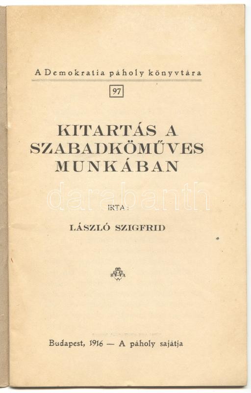Szabadkőművesség: László Szigfrid: Kitartás a szabadkőműves munkában. ... https://www.darabanth.com/de/164-Fernauktion/164.0/Andere-Sammelgebiete/Bucher-Freimauer~500030/Szabadkomuvesseg-Laszlo-Szigfrid-Kitartas-a-szabadkomuves-munkaban-Bp-1916-Demokratia-~II542075