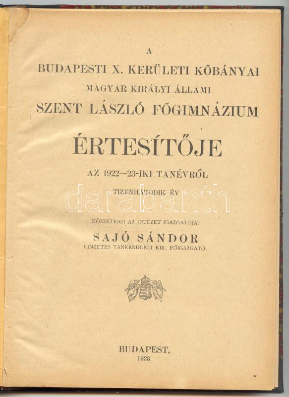 1922-28 A budapesti Szent László Reálgimnázium értesítői a tanévekről ... https://www.darabanth.com/de/164-Fernauktion/164.0/Andere-Sammelgebiete/Bucher-Geschichte~500029/1922-28-A-budapesti-Szent-Laszlo-Realgimnazium-ertesitoi-a-tanevekrol-plus-1928-A-Magyar-Kir-~II537286
