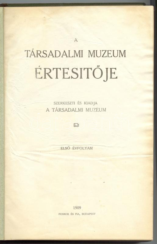 A Társadalmi Múzeum Értesítője, I. évf. Bp., 1909, Posner és fia https://www.darabanth.com/de/164-Fernauktion/164.0/Andere-Sammelgebiete/Bucher-Geschichte~500029/A-Tarsadalmi-Muzeum-Ertesitoje-I-evf-Bp-1909-Posner-es-fia~II535245