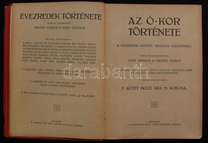Mezõfi Vilmos, Elek Sándor: Évezredek története, Fráter és Társa ... https://www.darabanth.com/de/164-Fernauktion/164.0/Andere-Sammelgebiete/Bucher-Geschichte~500029/Mez23245-fi-Vilmos-Elek-Sandor-Evezredek-tortenete-Frater-es-Tarsa-konyvnyomdaja-Bp-I~II535035