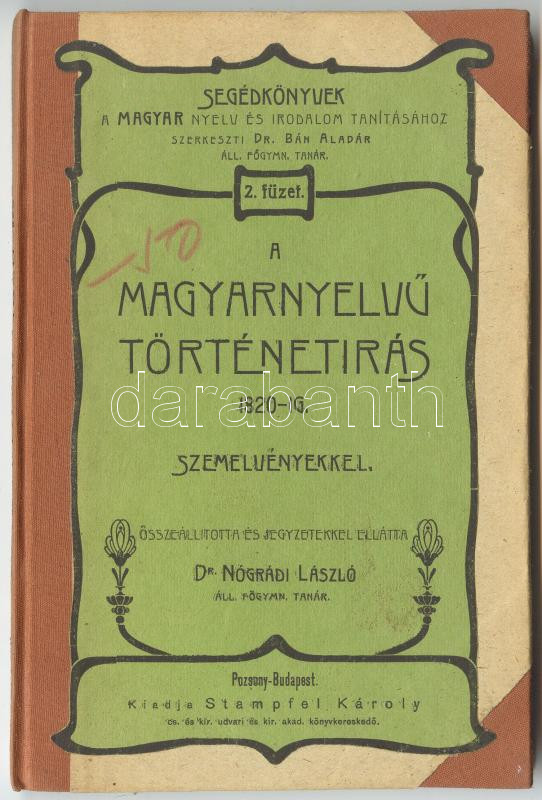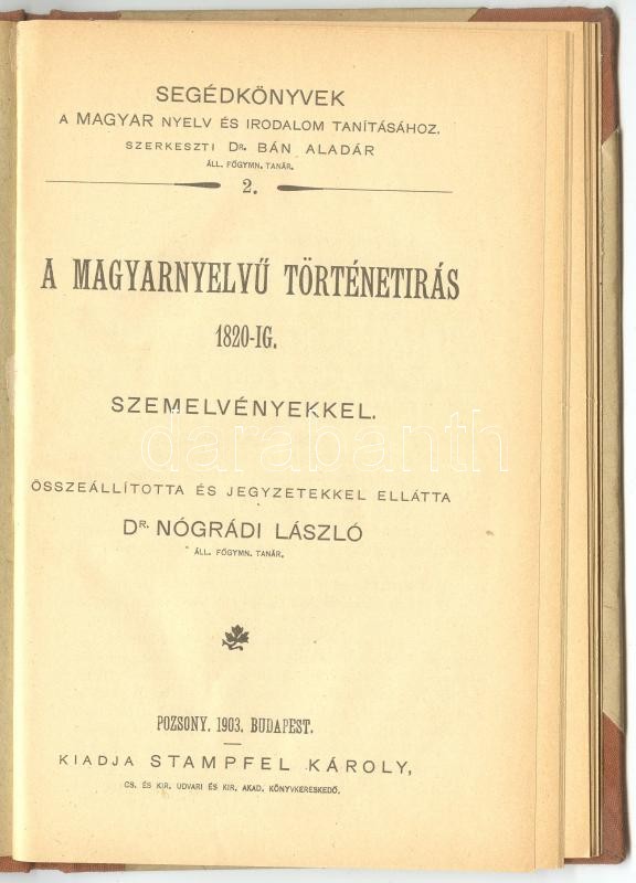 Nógrádi László: A magyar nyelvű történetírás 1820-ig. Pozsony-Budapest... https://www.darabanth.com/de/164-Fernauktion/164.0/Andere-Sammelgebiete/Bucher-Geschichte~500029/Nogradi-Laszlo-A-magyar-nyelvu-tortenetiras-1820-ig-Pozsony-Budapest-1903-Stampfel-64p~II538453