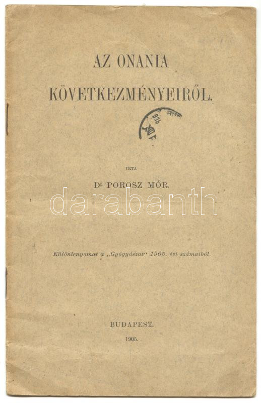 Dr. Porosz Mór: Az onania következményeiről. Különlenyomat a "Gyógyász... https://www.darabanth.com/de/164-Fernauktion/164.0/Andere-Sammelgebiete/Bucher-Sonstige-Raritaten~500037/Dr-Porosz-Mor-Az-onania-kovetkezmenyeirol-Kulonlenyomat-a-Gyogyaszat-1905-evi-szamai~II538882